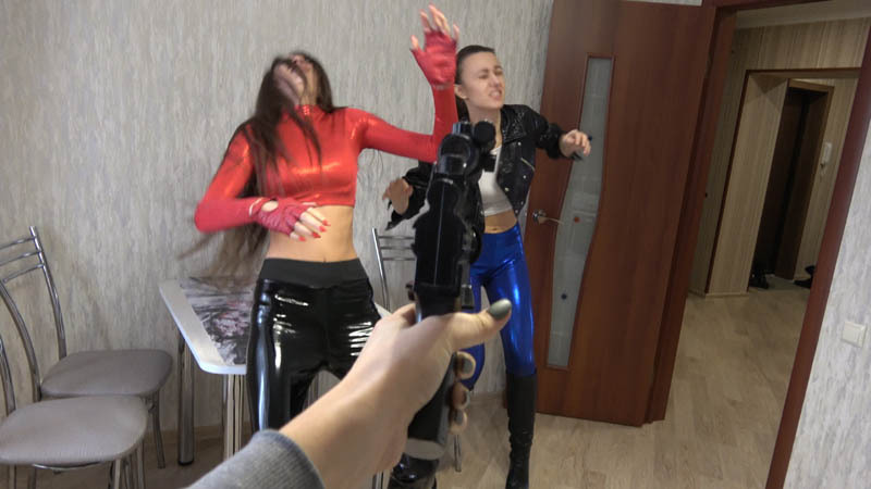 Sabrina's catfighting Room - SCR126 - The next round of fantasy gunfighting role-play against invisible attackers - POV machine pistol shootings with Fiona and Renee. This video has six shooting scenes. In all parts of the video Renee and Fiona were surprised by third person, and they have been shot from machine pistol. Highlights of the video are lots of body shaking and jerking, POV machine pistol shooting, fantastic acting with moanings and screaming, and finally lying limp in various rooms in their apartment!