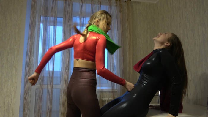 Sabrina's catfighting Room - SCR207 - Fantastic anything-goes catfight in the kitchen between two fitness women - Maya and Tess. The fight featured - hair-pulling, face slapping, breast grabbing, breast squeezing, breast punching, crotch attacks like crotch punching, kicking, knees between the legs, chokeholds, smotherholds, leg scissorholds, wrestling holds, using kitchen towel and lots, lots more... These two women look awesome and dangerous as they fight until bitter end!
