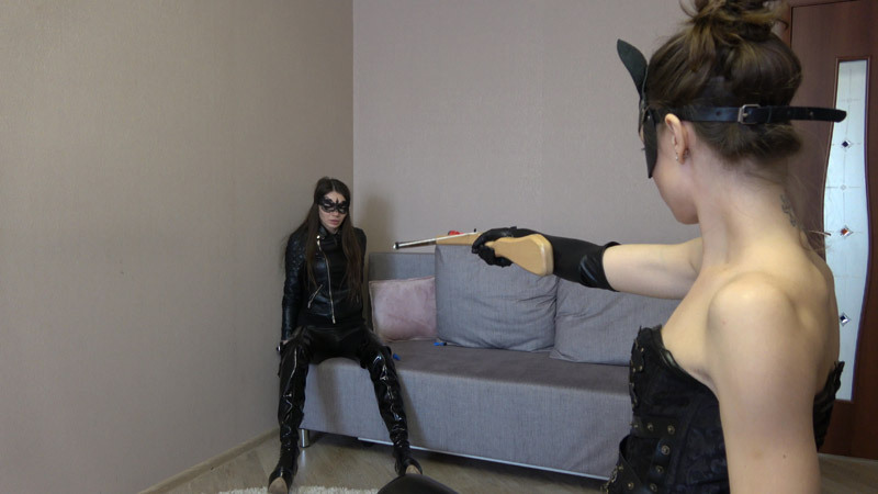 Sabrina's catfighting Room - SCR170 - A second part of Pure Domination and one-sided Role-Play featuring beutiful latex and leather dressed models - Fiona and Renee. In this part Renee shoots Fiona from her toy crossbow using safety darts, she is shooting into Fiona’s breast, belly and even between the legs! Fiona takes here in this video submissive role and enjoys as the darts hit her body!
