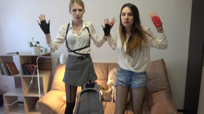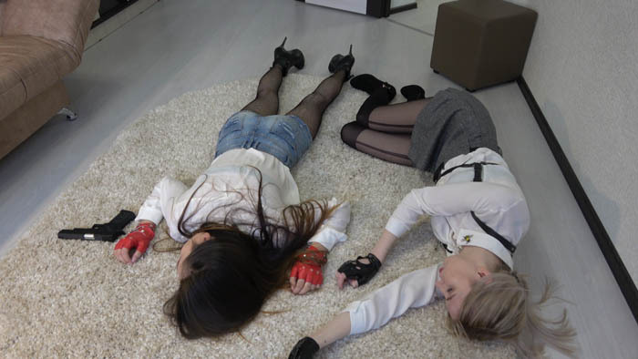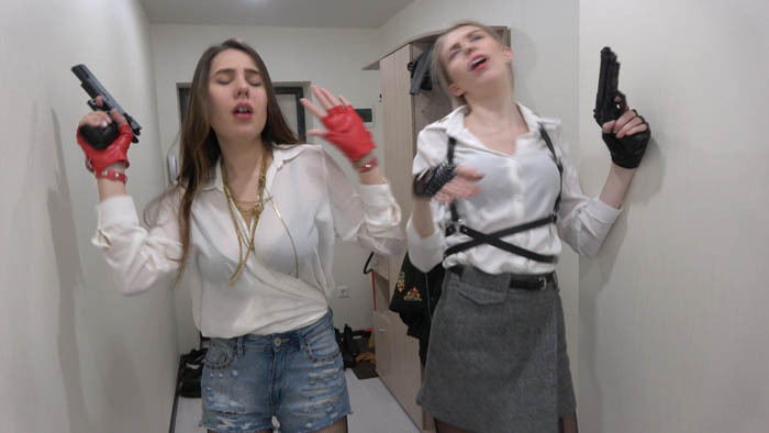 Sabrina's catfighting Room - SCR331 - In this fantastic role-play and fantasy shooting action video, Sabrina and Vera are playing spies, and each time they have been surprised by third person and machinegunned with long bursts!!! If you already watched our fantasy shooting role-plays, you will thrilled by this fantastic action! This video has 6 machinegun shooting scenes in various rooms! Sound-edited with gun sounds and background sounds.