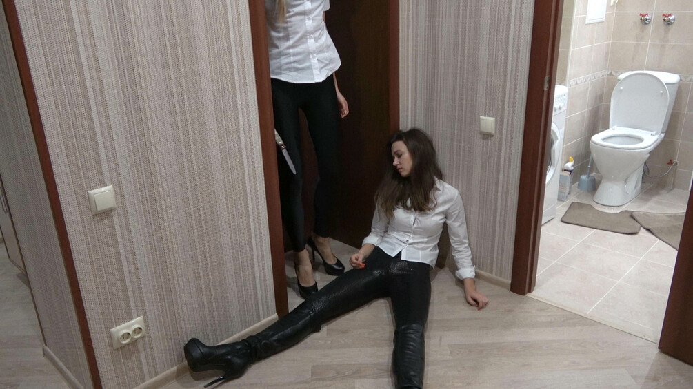 Sabrina's catfighting Room - SCR060 - Toyknife attacks - Maya and Renee fight each other with an telescopic toyknife - lots of breast, belly and crotch hits. Four fighting scenes in this video.